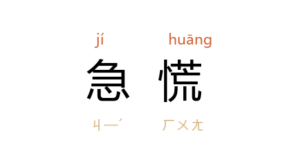 亦作“急慌慌”。 元 郑廷玉 《看钱奴》第三折:“泪汪汪甚人来守孝堂,急慌慌为亲爷来献香。”