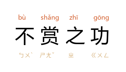 ⒈ 《史记·淮阴侯列传》:“臣闻勇略震主者身危,而功盖天下者不赏。”后以“不赏之功”极言功大。
