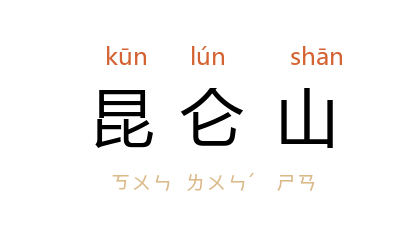 ⒈ 亦作“崑崙山”。中国西部山系的主干,西起帕米尔高原,经新疆西藏之间,通过青海西南到四川西北部,长2500公里,7千米以上高峰有多座。