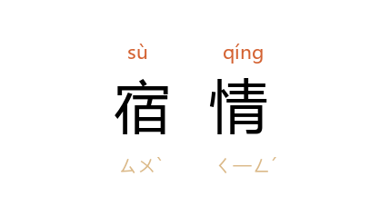 引北魏 郦道元 《水经注·洞过水》:“水西阜上有 原过祠,盖怀道协灵,受书天使,忧结宿情,传芳后日。栋宇虽沦,攒木犹茂,故水取名焉。”《礼记·王制》“凡听五刑之讼” 唐 孔颖达 疏:“故听讼者,本其宿情,立其恩义,为平量之,恕而免放。”