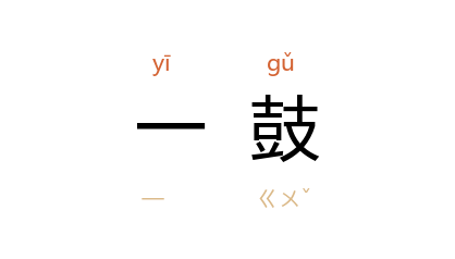 ⒉ 击鼓一次。引申谓一举,一战。参见“一鼓作气”。