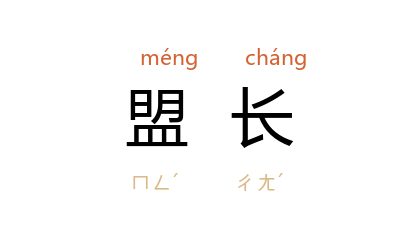 ⒈ 蒙古称一盟的领袖为「盟长」。