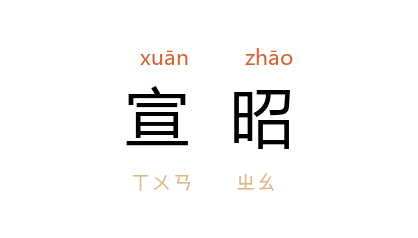 引《诗·大雅·文王》:“宣昭义问。”王引之 《经义述闻·毛诗中》:“宣昭犹言明昭。”《左传·昭公三十二年》:“伯父若肆大惠,復二 文 之业,弛 周 室之忧,徼 文 武 之福,以固盟主,宣昭令名,则余一人有大愿矣。”唐 韩愈 《和李相公摄事南郊览物兴怀》诗:“圣贤相遇少,功德今宣昭。”清 王夫之 《薑斋诗话》卷二:“经义之设,本以扬搉大义,剔发微言,或且推广事理,以宣昭实用。”
