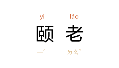 引唐 苏颋 《右仆射太子少师唐璿神道碑》:“事惟一心,恭乃三命,崇让颐老,归闲体正。”《初刻拍案惊奇》卷二十:“姑寄御酒二瓶,为伯父颐老之资;宫花二朵,为贤郎鼎元之兆。”清 曹寅 《看西廊秋叶》诗之三:“颐老丹砂色,他年鹤髮翁。”