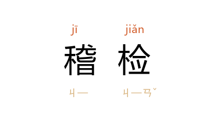 ⒈ 考核检查。 宋 程大昌 《演繁露续集·徽州苗绢》:“琳 为三司时,有建议者,患二税色目多,欲并为一,以便稽检。