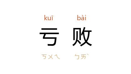 引汉 刘向 《说苑·敬慎》:“昆吾 自臧而满意,穷高而不衰,故当时而亏败,迄今而逾恶,是非损益之徵与?”《晋书·王戎传》:“戎 不仰依 尧 舜 典謨,而驱动浮华,亏败风俗,非徒无益,乃有大损。”梁启超 《读<日本书目志书>后》:“则就开矿言之,亏败已多矣。”