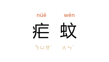 ⒈ 动物名。节肢动物昆虫纲双翅目蚊科疟蚊属。是传播疟疾的主要蚊子,能将疟原虫传入人体产生疟疾。翅膀有黑白色斑点,静止时腹部翘起,产卵于清水中,幼虫和蛹亦生长于河沟、池塘或水田中。
