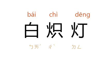 ⒈ 最常用的一种电灯。采用真空或充有惰性气体的玻璃灯泡,电流通过时,灯丝白热发光。
