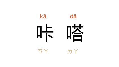 引《十月》1981年第1期:“﹝ 桂兰子 ﹞急匆匆地进了自己的宿舍,‘咔嗒’一声插上了门。”《当代》1981年第3期:“﹝ 郭路生 ﹞听见‘咔嗒’一声响, 玲玲 把电话挂上了。”