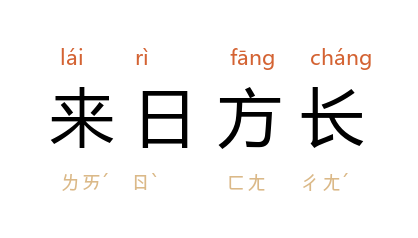 ⒈ 将来的日子还很长。宋·文天祥〈与洪端明云岩〉:「日来四境无虞,早收中熟,觉风雨如期,晚稻亦可望,惟是力绵求牧,来日方长,凛乎淑后。」后指展望未来,大有可为。清·汪由敦〈赵云崧瓯北初集序〉:「生以数年,即足胜人数十年功力,英年苕发,来日方长,勿辍其勤,勿满其志,吾安能测其所至哉!」也作「来日正长」。