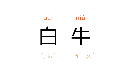 ⒈ 白色的牛。