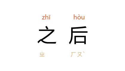 ⒈ 表示在某个时间或处所的后面。一般多指时间。