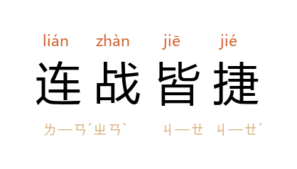 引《宋书·自序》:“既连战皆捷,士马旌旗甚盛。”明 张凤翼 《灌园记·乐毅攻齐》:“日来连战皆捷,已下 齐 七十餘城矣。”