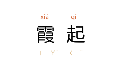 引《文选·孙绰<游天台山赋>》:“赤城 霞起以建标,瀑布飞流以界道。”李善 注:“孔灵符 《会稽记》曰:‘ 赤城,山名,色皆赤,状如云霞。’”南朝 梁元帝 《讨侯景檄》:“朱旗夕建,如 赤城 之霞起;戈船夜动,若沧海之奔流。”元 陈樵 《八咏楼赋》:“羣仙羽会,曄如芙蓉。虚步霞起,振衣为风。”