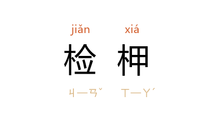 ⒈ 亦作“检押”。犹规矩,法度。保护书籍的封套。矫正,约束。