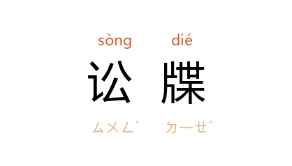 引宋 韩琦 《答孙植太博后园宴射》诗:“铃索声沉讼牒稀,优游大司养疎拙。”元 张养浩 《牧民忠告·弭讼》:“起讼有原,书讼牒者是也。”清 王韬 《淞滨琐话·倪幼蓉》:“讼牒朝投,判牘夕下,署无留案,狱无滞囚。”