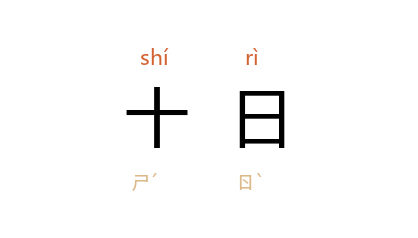 ⒈ 古代神话传说天本有十日,尧命后羿射落九日。十干所表示的日子。