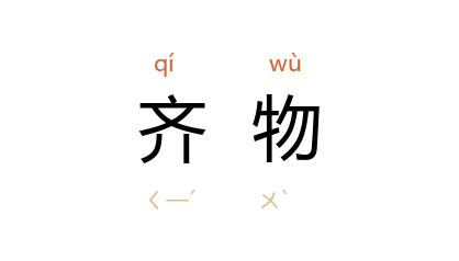 ⒈ 春秋、战国时老庄学派的一种哲学思想。认为宇宙间一切事物,如生死寿夭,是非得失,物我有无,都应当同等看待。这一思想,集中反映在庄子的《齐物论》中。