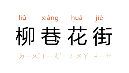 《镜花缘·第九八回》:「两旁俱是柳巷花街,其中美女无数,莫不俊俏风流。」
