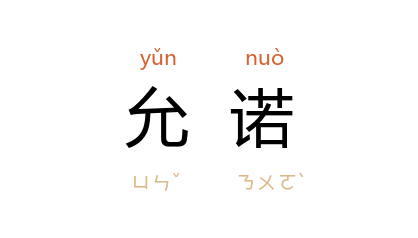 引《元典章·工部三·祇候》:“徒窥其官之所欲应而允诺。”清 蒲松龄 《聊斋志异·王大》:“燕子谷 黄八官人 放利债,同往贷之,宜必允诺。”巴金 《春天里的秋天》:“哥哥的求婚得不到女家的允诺。”