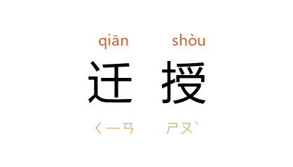 引《南史·蔡兴宗传》:“王景文、谢庄 等迁授失序, 兴宗 又欲改为美选。”唐 元稹 《上门下裴相公书》:“欲人之不怨,莫若迁授之有常;欲人之竭诚,莫若授拯于焚溺。”《二刻拍案惊奇》卷十九:“上皇登极,恩典下颁,致仕官皆得迁授一级,宣议郎加迁宣德郎。”姚雪垠 《李自成》第一卷第二二章:“﹝ 崇祯 ﹞拿起来一张由内阁进呈请旨的名单,上边开着十个人的姓名……有的是选授,有的是迁授。”