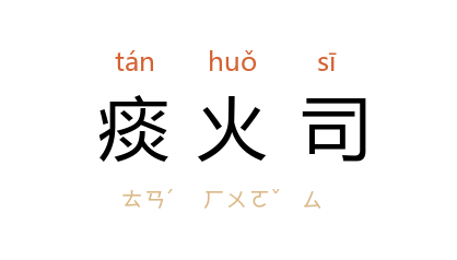引清 袁枚 《新齐谐·赵氏三世为神》:“恭毅公 薨,恩许奔丧,侍读哀毁遘疾,病中每自诧曰:‘呕吐满地,使人难堪,吾何为居此职耶?’众问何职?曰:‘痰火司也。’家人不知痰火司为何神。越日祷于 东岳 行宫,则两廡果有痰火司神。”