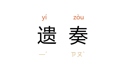 引《新唐书·令狐楚传》:“﹝ 郑儋 ﹞暴死,不及占后事,军大讙,将为乱。夜十数骑挺刃邀取 楚,使草遗奏,诸将圜视, 楚 色不变,秉笔輒就,以徧示士,皆感泣,一军乃安。”宋 陈傅良 《挽尤延之尚书》诗:“遗奏定留封禪藳,凭谁吹送九重天。”清 朱琦 《感事》诗:“哀哀老尚书,遗奏殊嘘唏。”王皓沅 《清宫十三朝》第八一回:“﹝ 吴可读 ﹞便立意拚了死,殉义于 惠陵 附近 马神桥,写了一折遗奏。”