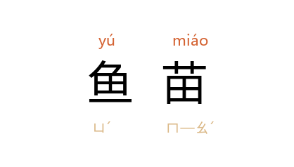 明 李时珍 《本草纲目·鳞二·鱼子》:“凡鱼皆冬月孕子,至春末夏初则於湍水草际生子。有牡鱼随之,洒白盖其子。数日即化出,谓之鱼苗,最易长大。”