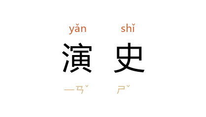 ⒈  以评书、小说等形式讲述史事。 宋 周密 《武林旧事·诸色伎艺人》有“演史”。