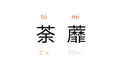 ⒈ 酴醿又称,现常写作荼縻、荼蘼。荼蘼为落叶灌木,以地下茎繁殖。荼蘼花在春季末夏季初开花,凋谢后即表示花季结束,所以有完结的意思。“开到荼蘼花事了”出自宋王琪的《春暮游小园》