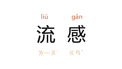 ⒈ “流行性感冒”的简称。由流感病毒引起的急性呼吸道传染病,患者发烧,头疼,畏寒,全身酸痛,咽喉发炎,有时恶心、呕吐。