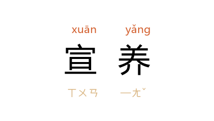 引《国语·周语下》:“王将铸无射,问律於 伶州鳩,对曰:‘夫六,中之色也,故名之曰黄钟,所以宣养六气、九德也。’”韦昭 注:“宣,徧也。六气,阴、阳、风、雨、晦、明也。”《晋书·慕容儁载记》:“二至之礼,事殊餘节,猥动金声,惊越神气,施之宣养,实为未尽。”