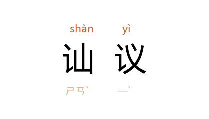 引《后汉书·蔡邕传》:“方今国祚中衰,神器不固,不可令佞臣执笔在幼主左右,既无益圣德,復使吾党蒙其訕议。”《后汉书·刘表传》:“﹝ 刘表 ﹞与同郡 张俭 等俱被訕议,号为‘八顾’。”