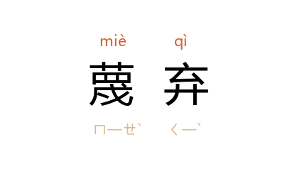 ⒈ 亦作“蔑弃”。轻视,鄙弃。见“蔑弃”。