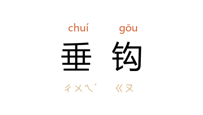 引唐 李沛 《四水合流》诗:“羡鱼犹未已,临水欲垂鉤。”清 顾炎武 《江上》诗之二:“江风吹回波,垂鉤鱼不上。”
