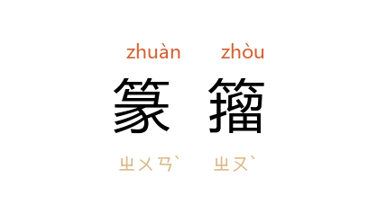 引晋 左思 《魏都赋》:“讎校篆籀,篇章毕覿。”唐 韩愈 《祭郴州李使君文》:“接雄词於章句,窥逸踪於篆籀。”《新五代史·杂传十九王仁裕》:“﹝ 仁裕 ﹞喜为诗。其少也,尝梦剖其肠胃,以 西江 水涤之,顾见 江 中沙石皆为篆籀之文,由是文思益进。”黄质 《题朱生君实延龄遗墨》诗:“笔参篆籀字树石,行年穉弱气超迈。”