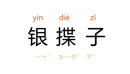 引《古今小说·张古老种瓜娶文女》:“从里面叫出几个人来,都着紫衫,尽戴花红银揲子。”许政扬 校注:“一种银饰物, 宋 代做喜事的人家常用以犒赏从人。”
