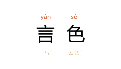 引《无量寿经》卷下:“言色常和,莫相违戾。”《太平广记》卷三七二引 唐 谷神子 《博异志·张不疑》:“言色惨沮,吁嘆不已。”明 黄淳耀 《自监录一》:“吾尝众中察人,有以言色説人者,未尝不心鄙之,切勿自蹈此失。”