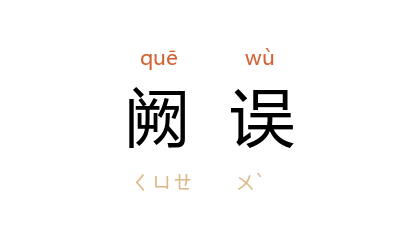 引《三国志·吴志·周瑜传》:“瑜 少精意於音乐,虽三爵之后,其有闕误, 瑜 必知之,知之必顾,故时人謡曰:‘曲有误, 周郎 顾。’”宋 欧阳修 《乞罢郭承祐知邢州》:“不得容庇不才因循,不切糺举,却致临事闕悮。”《文献通考·经籍二十》:“唯论次多闕误,而事迹粗存。”