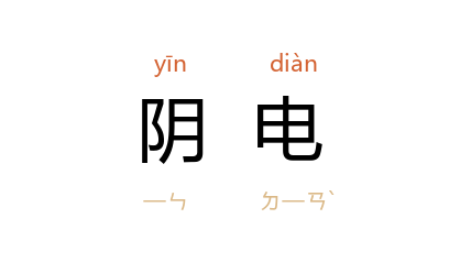 ⒉ 物理学名词。一种负电。物体得到多馀的电子时所表现出的带电现象。这种性质的电,叫“阴电”。如与绒布或猫皮擦过的火漆棒所生之电即阴电。通常以负号(-)表示。