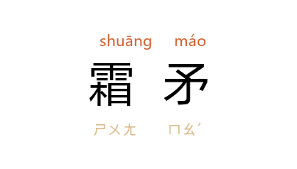 引唐 李德裕 《阳给事》诗:“数仞城既毁,万夫心莫留,跳身入飞鏇,免胄临霜矛。”宋 文同 《峰铁峡》诗:“霜矛雪甲寒如水,候卒何由知首尾。”明 夏完淳 《大哀赋》序:“黄旗紫盖,雪戟霜矛。”