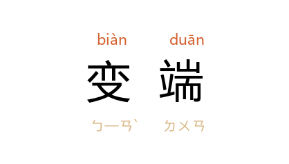 引清 龙启瑞 《上梅伯言先生书》:“近年变端殊大,非前时意料所及。”吴玉章 《从甲午战争前后到辛亥革命前后的回忆》十五:“川省 护理总督 王人文 见民情激愤,知道压迫必致引起变端,特为奏请暂缓接收铁路。”