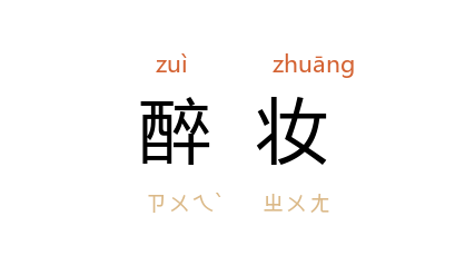 ⒈ 一种流行于五代时前蜀的妆扮。前蜀王衍的后宫,戴金莲花冠,著道士服,酒酣后免冠,更施朱粉,称为「醉妆」。