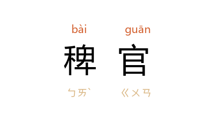 ⒈ 小官。小说家出于稗官,后因称野史小说为稗官。