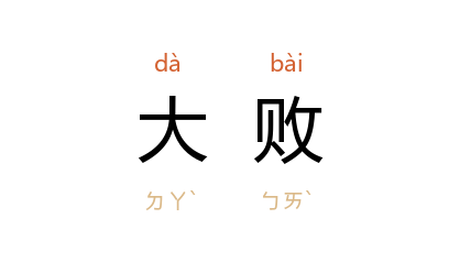 ⒈ 在竞争和军事对抗中遭受惨重的失败。