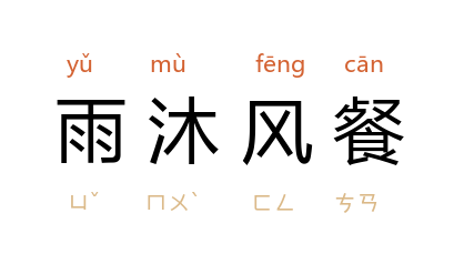 ⒈ 借雨水洗头,在风里吃饭。比喻奔波劳苦。参见“櫛风沐雨”。