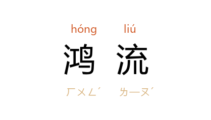 引唐 元稹 《答姨兄胡灵之五十韵》:“原燎逢冰井,鸿流值木罌。”宋 陆游 《贺汤丞相启》:“譬犹震风凌雨之动地,夏屋愈安;鸿流巨浸之稽天,方舟独济。”清 丘逢甲 《岁暮杂感》诗之二:“赤县鸿流堙息壤,紫垣狼燄迫勾陈。”
