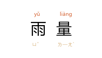 ⒉ 任何形式降水之量。通常指由雨量器内所量出的量而言。现常以含义较为明确的「降水量」代替「雨量」。