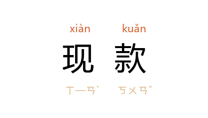 ⒈ 现在就有或立即可付的钱。也作「现金」。