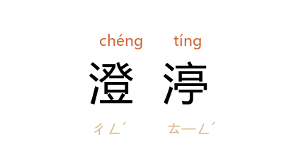 引晋 孙盛 《老聃非大贤论》:“值澄渟之时,则司契垂拱;遇万动之化,则形体勃兴。”唐 白居易 《狂吟七言十四韵》:“性海澄渟平少浪,心田洒扫浄无尘。”